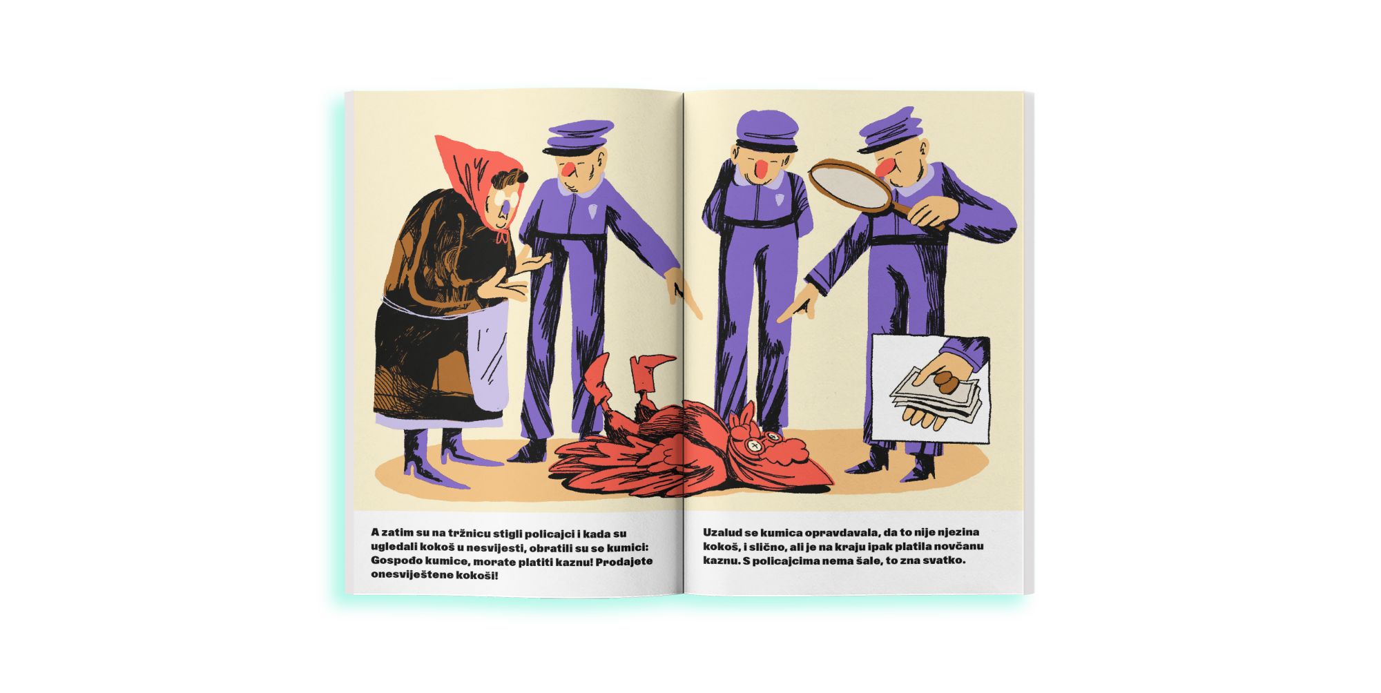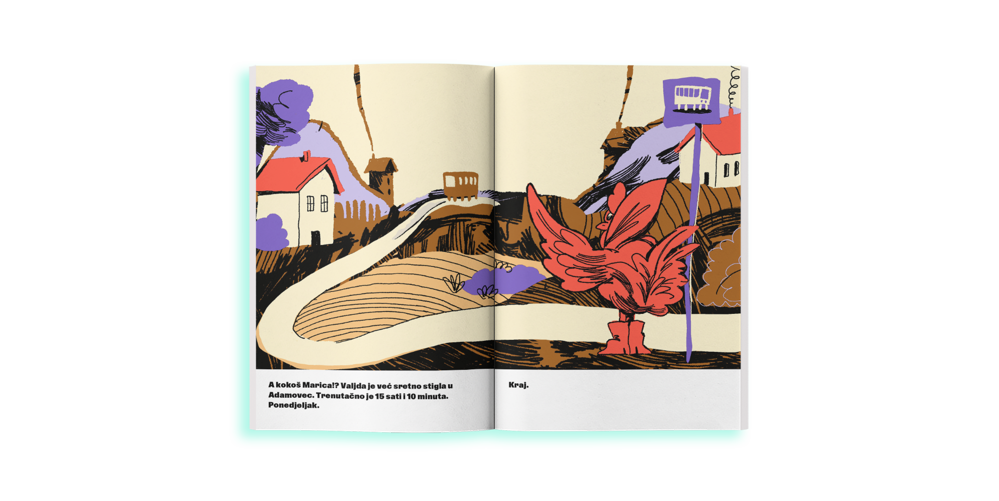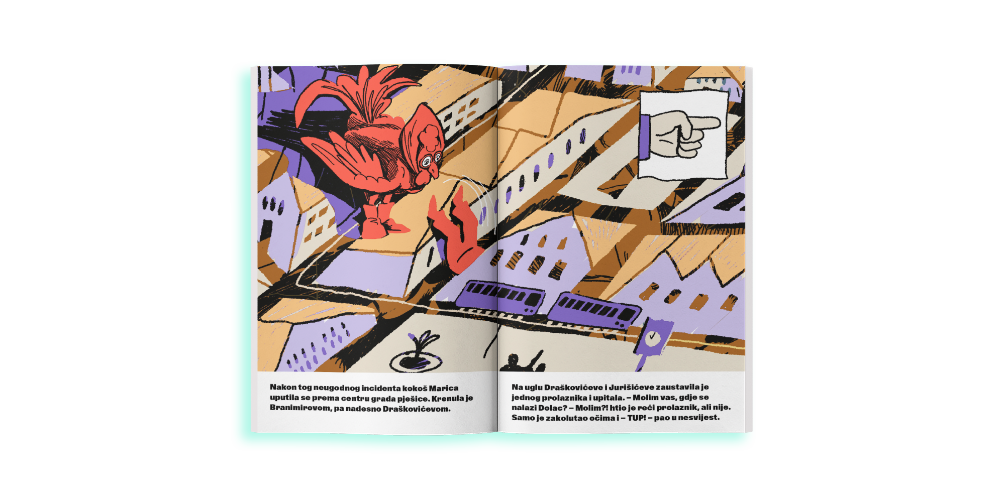 In this new edition, Marica the Hen from Adamovec leaves the peace of her village and embarks on the adventure of a lifetime – to the very center of Zagreb. On her journey, Marica encounters various city characters, including vendors at Dolac Market, passersby on the streets, and policemen. At recognizable Zagreb locations, her encounters and interactions lead to hilarious and absurd situations.