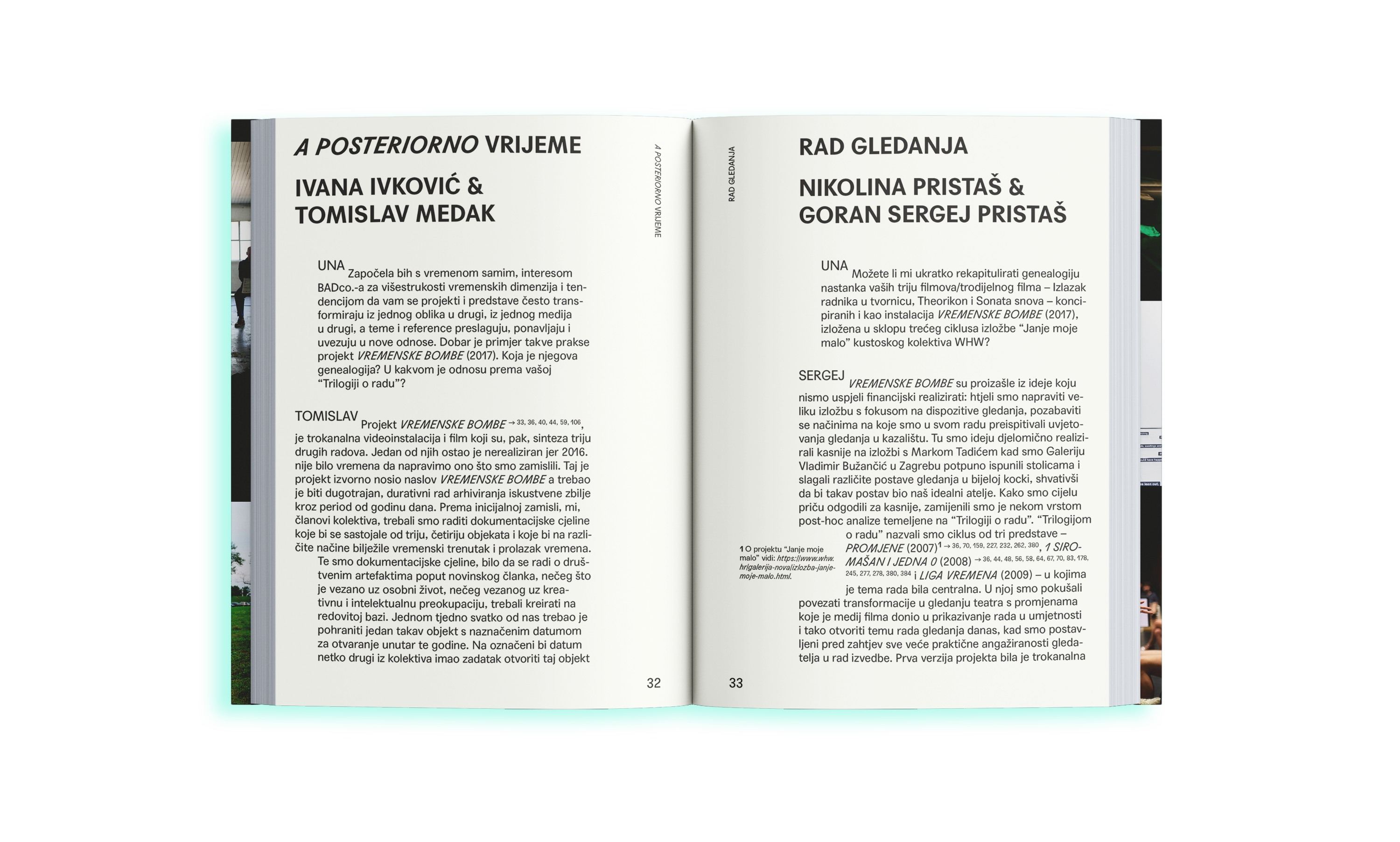 The book of interviews with BADco. — a collaborative performance collective based in Zagreb, Croatia. The artistic core of the collective are Ivana Ivković, Ana Kreitmeyer, Tomislav Medak, Goran Sergej Pristaš, Nikolina Pristaš and Zrinka Užbinec.